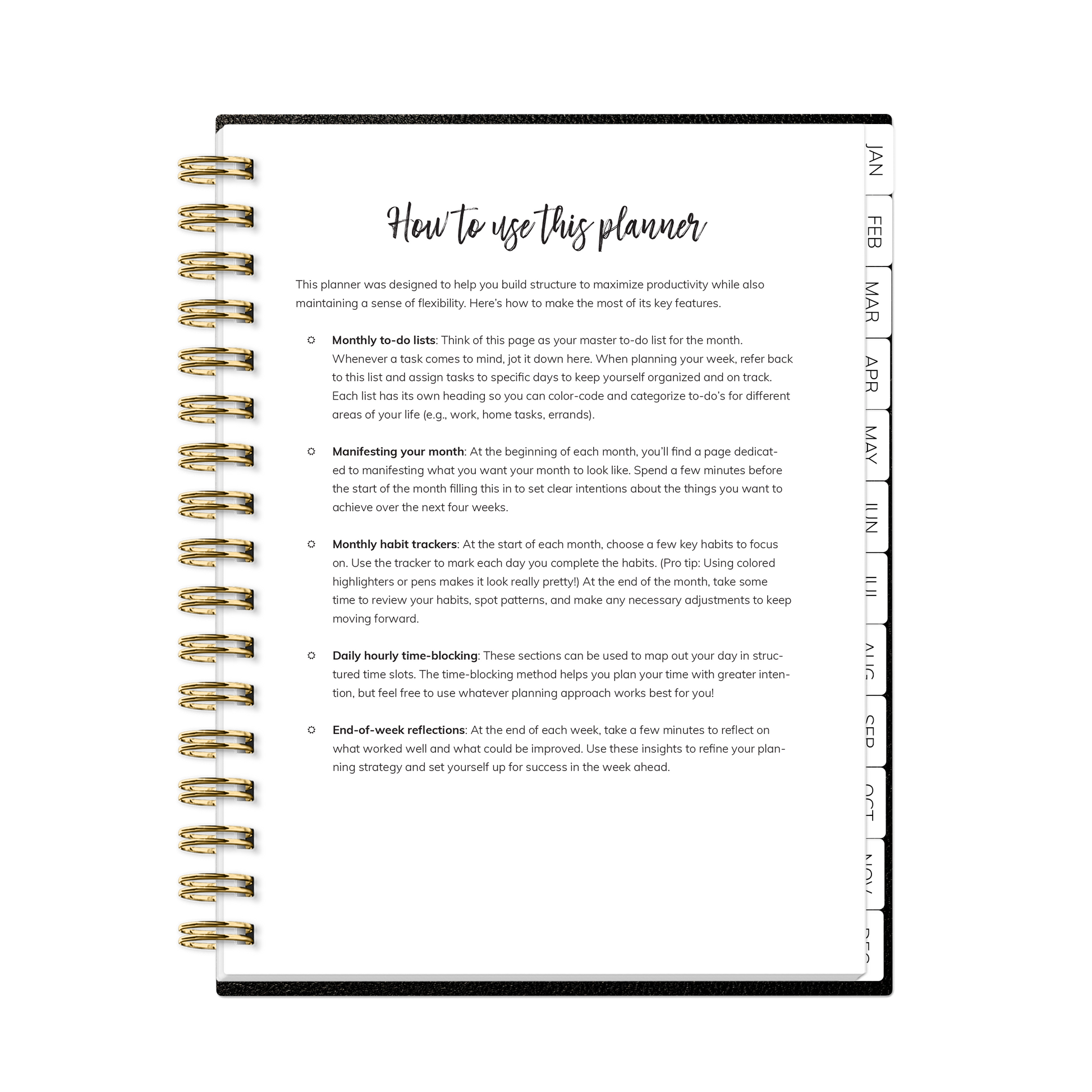 The Habit Planner is more than just a planner. It's your ultimate guide to becoming the healthiest, most intentional version of yourself. Designed for busy people juggling work, life, family, and wellness goals, this planner combines fun habit trackers, daily time-blocking, and motivational tools to help you build healthy habits that actually stick.